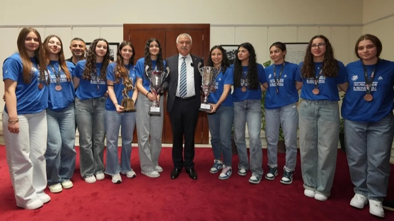 Türkiye 3’üncüsü olan takımın oyuncuları, kupalarıyla birlikte Türkiye Belediyeler Birliği Başkan Vekili ve Adana Büyükşehir Belediye Başkanı Zeydan Karalar’ı ziyaret etti.