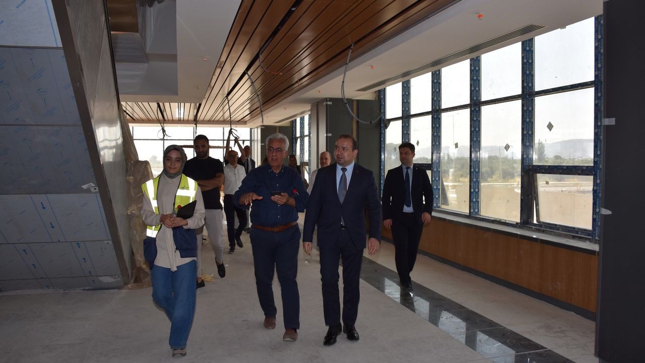Aydın Şehir Hastanesi’nin yataklı servisler, acil servis, ameliyathane, poliklinik alanları, görüntüleme alanları, özellikli birimler, teknik ve tıbbi birimlerinde yerinde inceleme ve değerlendirmelerde bulunan İl Sağlık Müdürü Şenkul, yürütülen çalışmalar hakkında yüklenici firma yetkililerinden ve teknik ekiplerden bilgi aldı.
