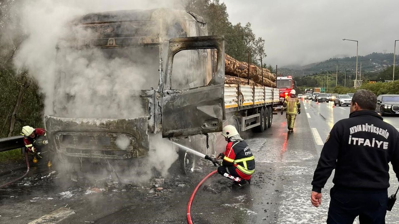 Aracın ön tarafında yükselen alevleri fark eden şoför, tırı yolun sağına çekerek durumu 112 Acil Çağrı Merkezi'ne bildirdi. İhbar üzerine bölgeye Aydın Büyükşehir Belediyesi İtfaiye Daire Başkanlığı ekipleri sevk edildi.