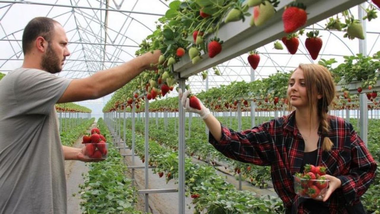 Havadan görüntülenen Aydın Ovası’nın önemli bir bölümünün çilek seraları ile kaplanırken Aydın’da üretilen çileklerin başta Rusya, Romanya, Sırbistan Polonya ve Belarus ülkeleri olmak üzere dünyanın çeşitli ülkelerine ihraç edildiği belirtildi.