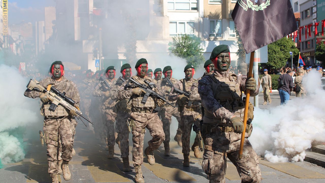 Şiirlerin okunduğu, halk oyunları gösterisinin yapıldığı törende helikopter ve muharip uçak geçişleri vatandaşlar tarafından heyecanla takip edildi. İstasyon Meydanı’ndaki kutlamalar tören geçişi ile sona erdi.