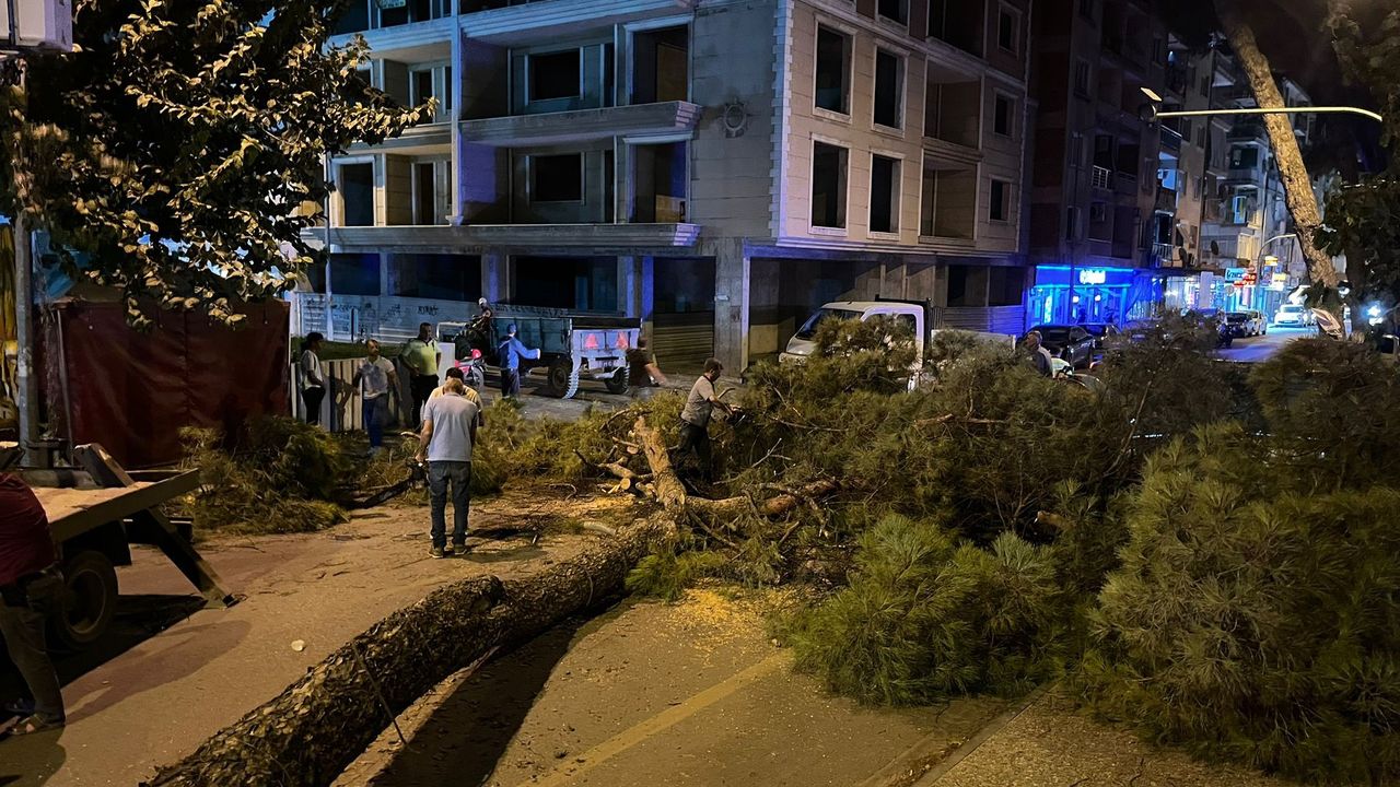 Belediye ekipleri, ağacı kontrollü bir şekilde keserek iş makinesi yardımıyla kaldırdı. Temizlik çalışmalarının tamamlanmasının ardından cadde yeniden trafiğe açıldı.