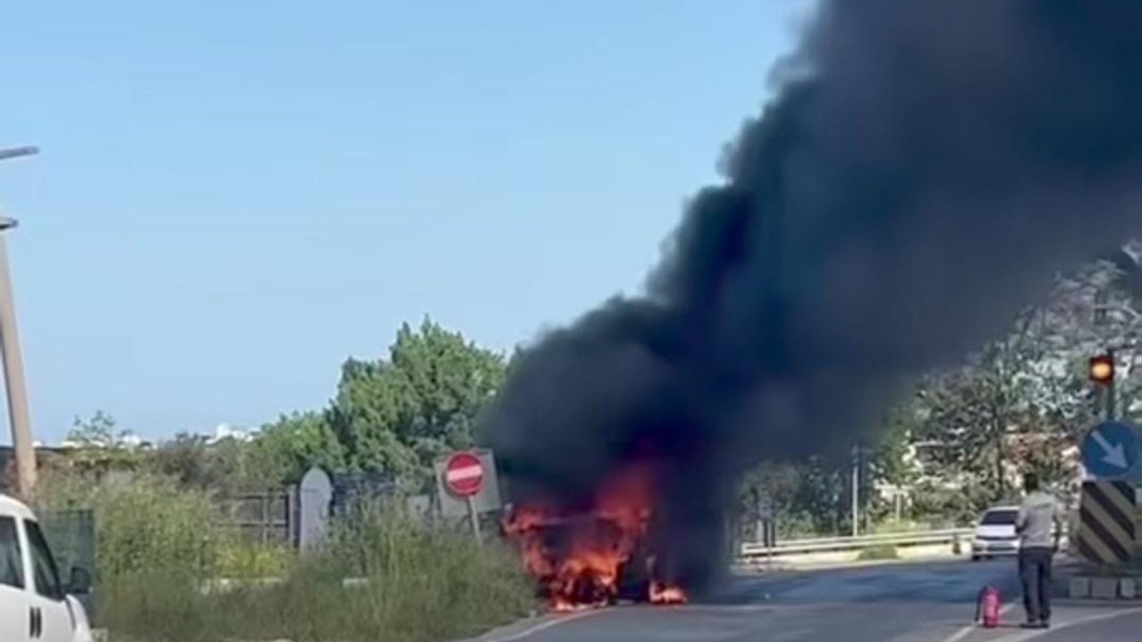 Alevleri farkeden eden sürücü, aracı yol kenarına çekip, durumu polis ve itfaiye ekiplerine bildirdi.