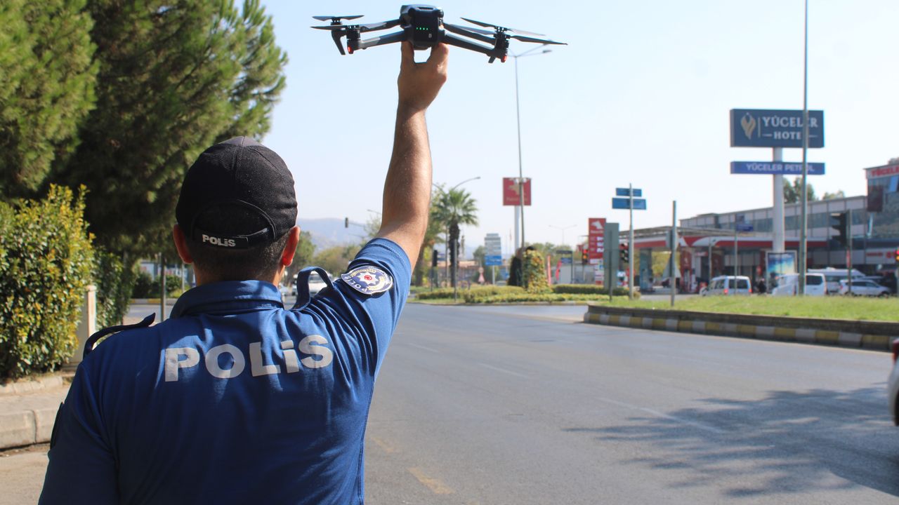 Aydın'da Trafik Denetleme Şube Müdürlüğü ve İnsansız Hava Araçları Büro Amirliği'ne bağlı İHA operatörleri tarafından drone destekli trafik denetimi gerçekleştirildi.