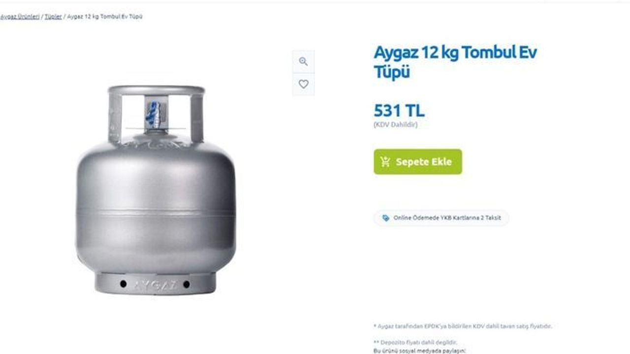 Aygaz marka 12 kilogram tombul ev tüpü, 531 lira olarak belirlendi.