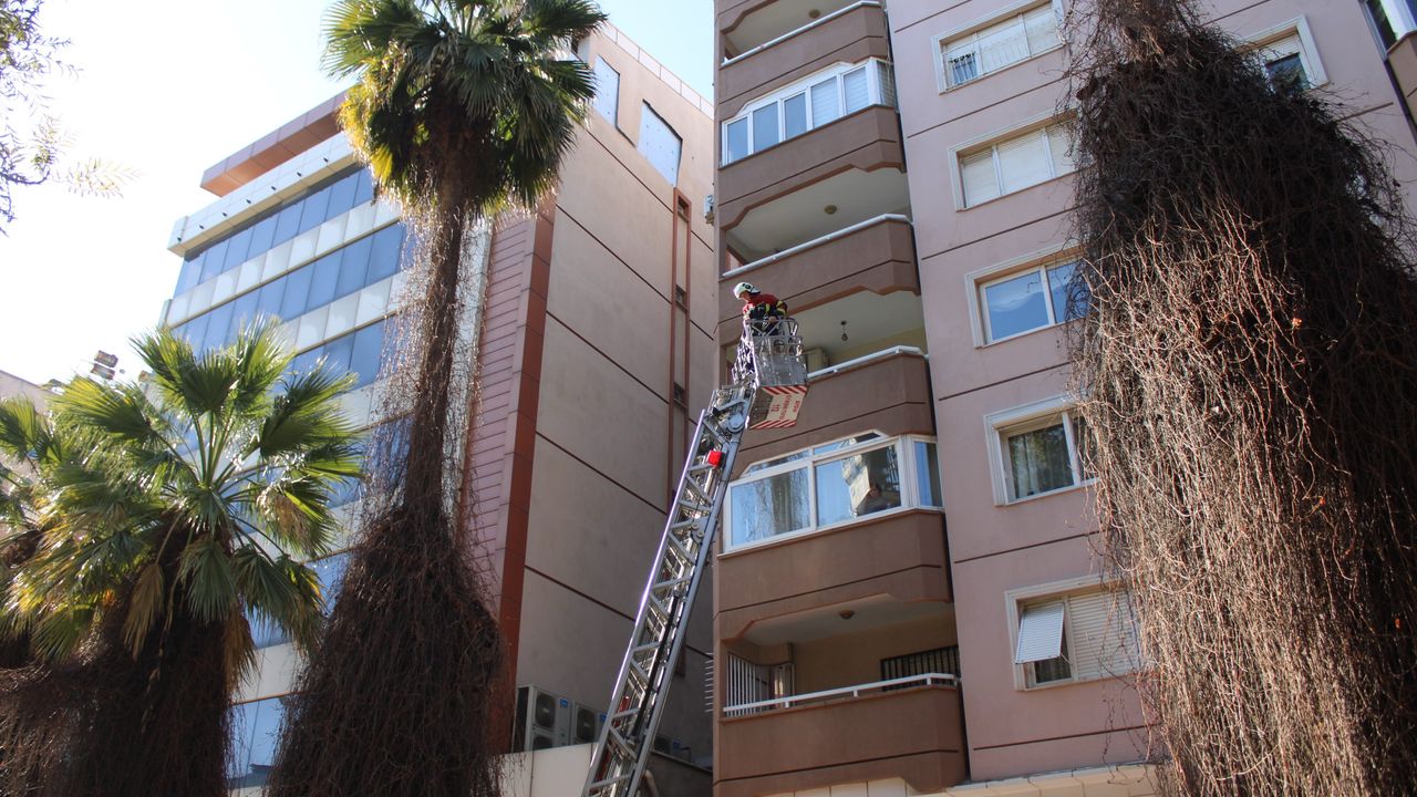 Kısa sürede olay yerine gelen ekipler, bölgede güvenlik önlemi aldı. Ardından Aydın Büyükşehir Belediyesi İtfaiye Daire Başkanlığı ekipleri, merdivenli araç marifeti ile binaya çıktı.