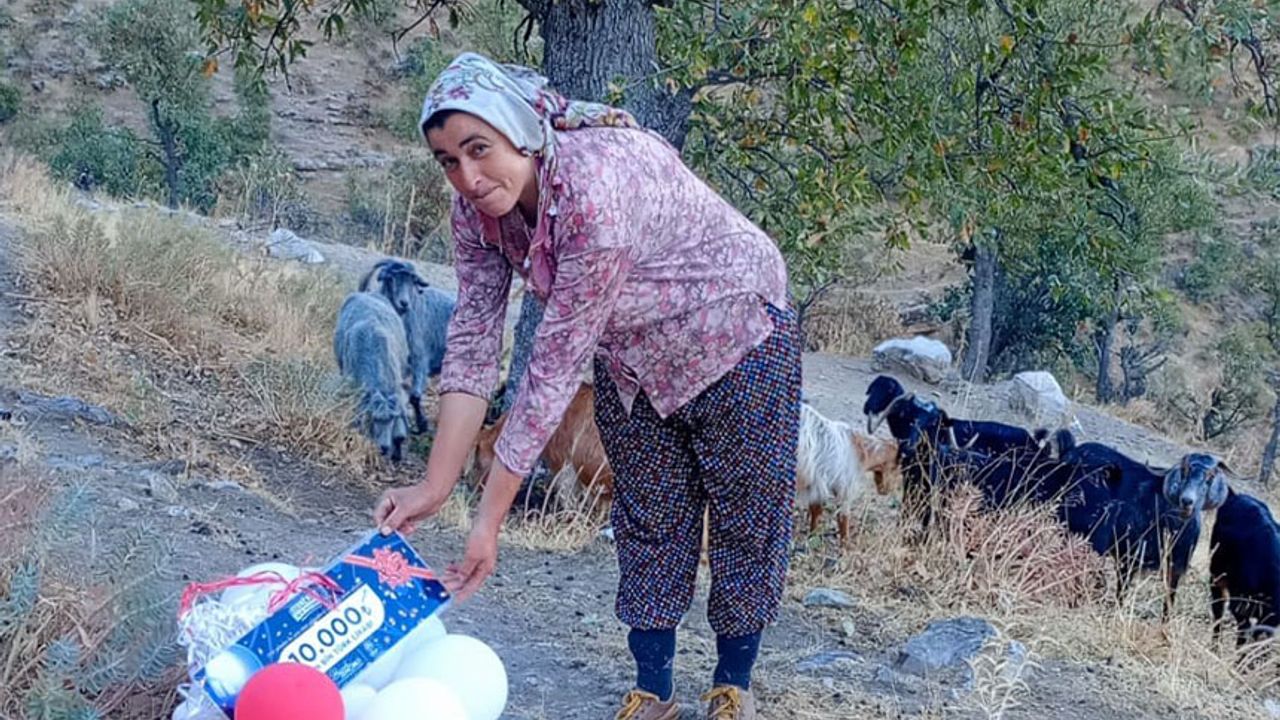 Balon Kuyucak ilçesinin Pamucak Mahallesi'nde keçi otlatan Hatice Düztepe tarafından bulundu. 10 Bin TL hediye çekini bulan talihli, Germencik Belediyesine gidip hediyesini alacak.
