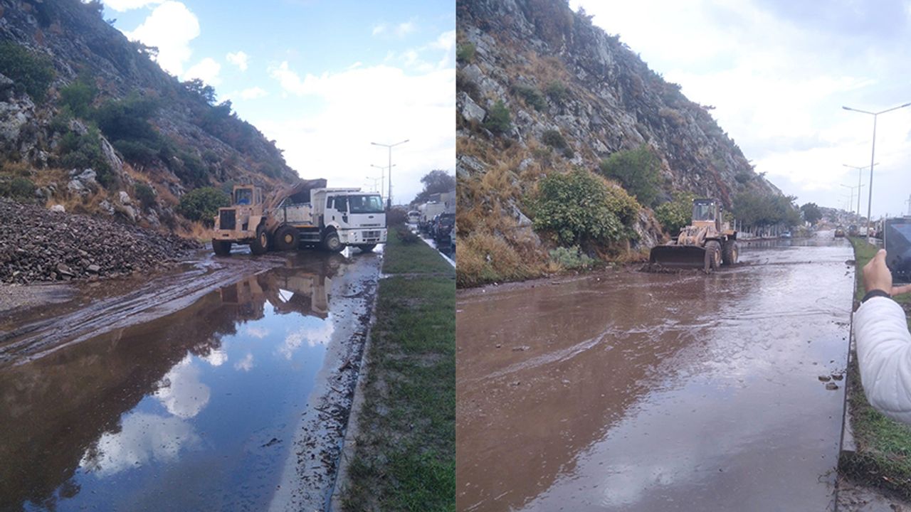 Dağdan yola inen çamur ve kaya parçalarının temizlenmesi için çalışma başlatıldı. Ekiplerin yaptığı çalışmanın ardından yol kontrollü olarak trafiğe açıldı.