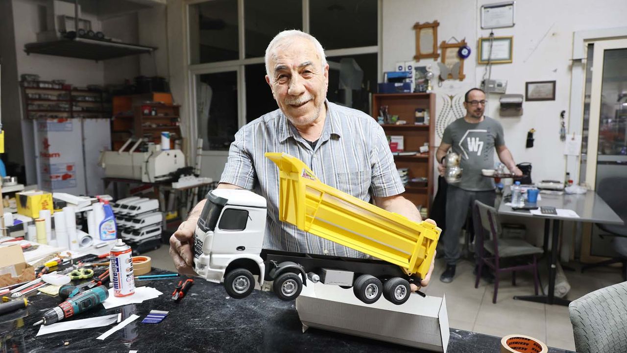 Sipariş vermek isteyenler orjinal ürün gönderiyorlar, biz de onun ölçeği üzerinden küçültüyoruz. Hiç olmayan bir modeli de resmine bakarak ölçeklendirerek küçültüyoruz. Bunlar benim çocukluk oyuncaklarım, bunlarla küçükken oynadım. Hepsinde de fotoğraflarım var. Bu kamyonla küçükken rampa aşağı üstüne binerek oynuyorduk. Kaldırıma vurunca duruyordu ve hurda durumuna gelmişti. O zamanlar babama önünü tamir ettirince eli daha fazla alıştı ve ondan sonra farklı şeyler yaptırınca böyle güzel bir ortam oluştu" dedi.