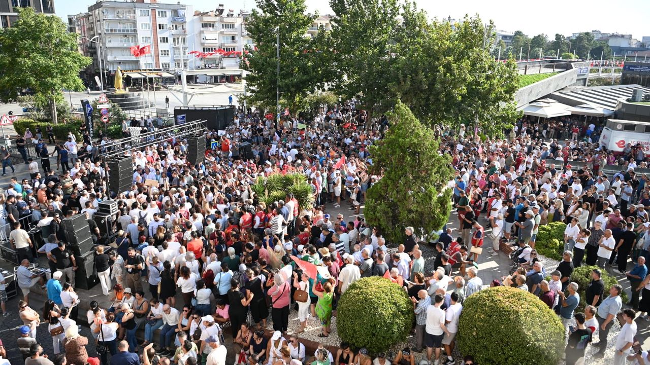 Alanda toplanan binlerce kişi Kuşadası Belediye Başkanı Ömer Günel’i alkışlarla karşılayıp, bağırlarına basarken ellerinde taşıdıkları pankartlar ve attıkları "Aydın halkındır halkın kalacak" "Satılmış başkan oylarımı geri ver" "CHP burada başkan Saray'da" sloganlarıyla da Aydın Büyükşehir Belediye Başkanı Özlem Çerçioğlu’na tepkilerini gösterdiler.