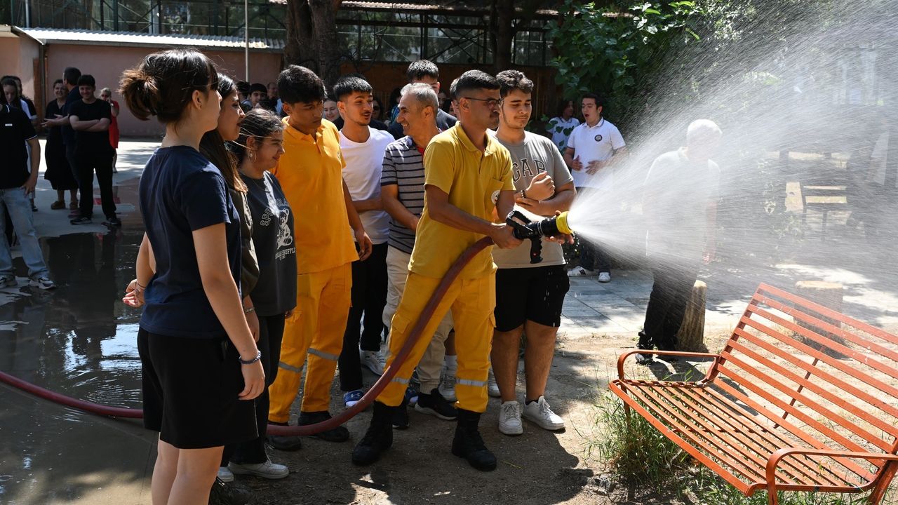 Ayrıca teorik eğitimin yanı sıra öğrenciler, uygulamalı olarak da yangına karşı ilk müdahale yöntemleri hakkında bilgilendirildi.