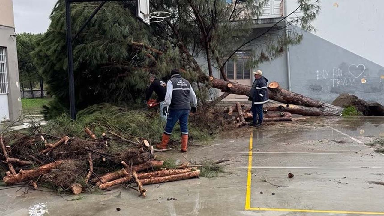 Aydın genelinde dün etkili olan kuvvetli rüzgar, Koçarlı’nın Bıyıklı Mahallesi’nde korku dolu anlara sahne oldu. Bıyıklı İlk ve Ortaokulu bahçesinde bulunan yılların çam ağaçları, fırtınanın şiddetine dayanamayarak köklerinden kopup devrildi. Yaklaşık 200 öğrencinin eğitim gördüğü okulda olayın gece saatlerinde yaşanması ise mahalle sakinlerine derin bir nefes aldırdı. İhbar üzerine sabah saatlerinde bölgeye yönlendirilen belediye ekipleri, okul bahçesinde devrilen ağaçların kaldırılması ve alanın güvenli hale getirilmesi için çalışma başlattı. Olayda can kaybı ve yaralanma yaşanmazken, mahalle sakinleri güçlü rüzgarın adeta ortalığı savaş alanına çevirdiğini belirtti. Yetkililer, bölgede rüzgarın etkisini sürdüreceğini belirterek vatandaşları tedbirli ve duyarlı olmaları konusunda uyardı.