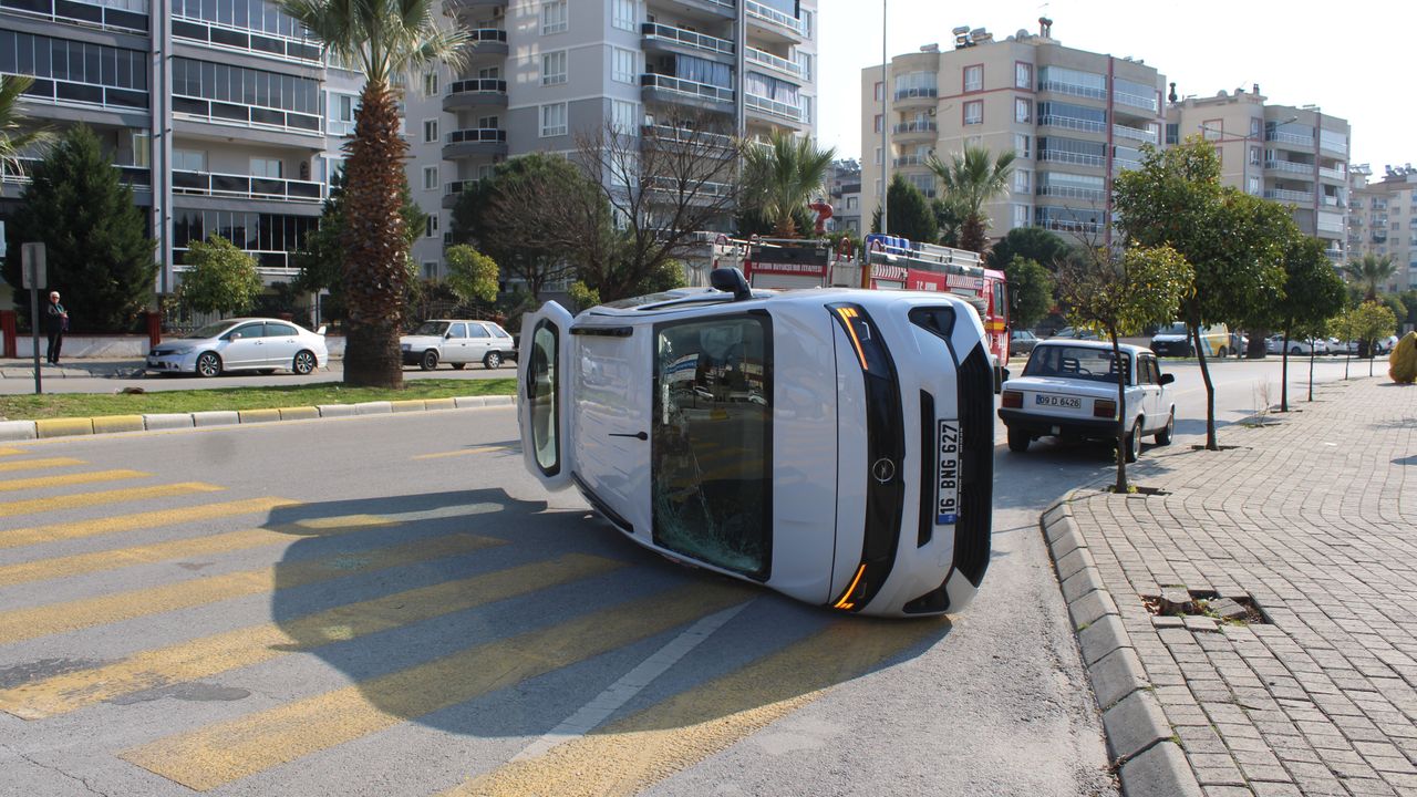 Edinilen bilgiye göre, Yörük Ali Efe Bulvarı üzerinde seyir halinde olan B.M. idaresindeki 09 AEK 621 plakalı otomobil ile Efekent Bulvarı üzerinde seyir halinde olan V.Y. idaresindeki 16 BN 627 plakalı hafif ticari araç, kavşakta çarpıştı.