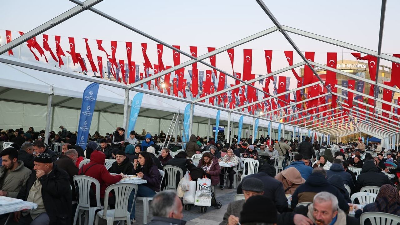 Büyükşehir Belediyesi’nin kurduğu iftar sofralarında her yaştan vatandaş bir araya geliyor, oruçlar hep birlikte açılıyor.