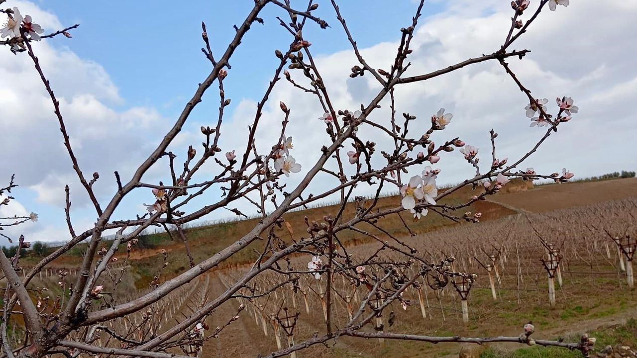 Bağ budama çalışmaları için tarlalara giden işçiler, beyaz çiçeklerle kaplanan badem ağaçlarını görünce hayrete düştü.