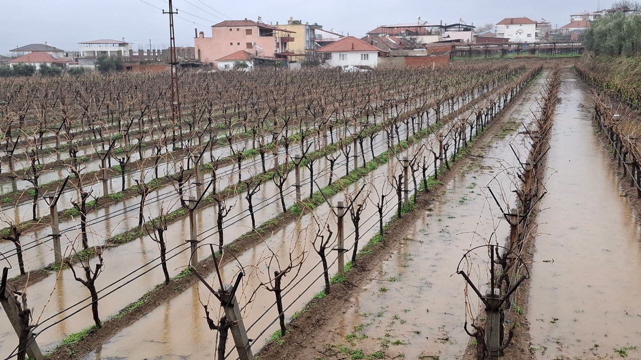 İlçede etkili olan sağanak yağışlar nedeniyle dere ve çayların akmaya başlamasıyla birlikte üzüm bağlarına sel suları girdiği, bağların kışlık suyunu aldığı belirtildi.