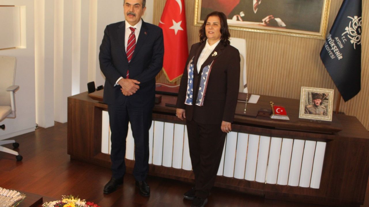 Milli Eğitim Bakanı Yusuf Tekin bir dizi ziyaret ve program için Aydın’a geldi. Aydın’da temaslarda bulunan Bakan Tekin Aydın Büyükşehir Belediye Başkanı Özlem Çerçioğlu’nu da makamında ziyaret etti. Bakan Tekin, belediye binası girişinde çiçekle karşılandı.