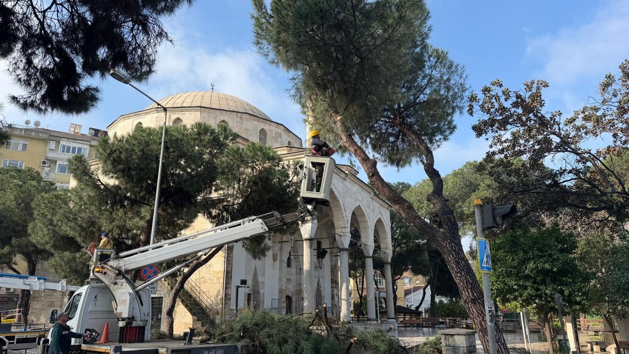 Tarihi Süleyman Bey Camii çevresinde bulunan ağaçlar, gelecekte daha sağlıklı büyümeleri amacıyla titizlikle budandı. Büyükşehir Belediyesi’nin uzman personelleri tarafından gerçekleştirilen çalışmalar ile hem kent estetiğine katkı sunuldu hem şehrin yeşil dokusu güvence altına alındı. Çalışmalar, vatandaşlardan da tam not aldı.