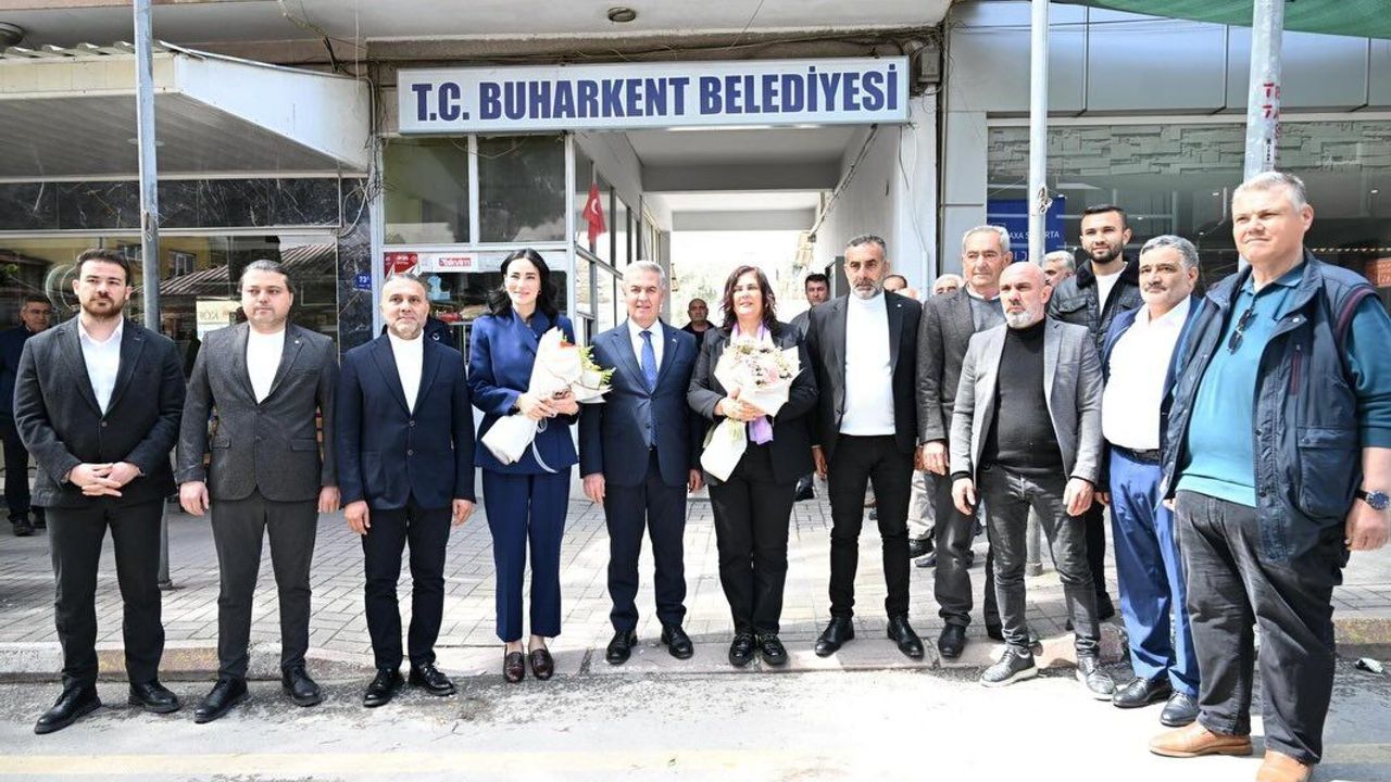 Heyeti Buharkent Belediye Başkanı Mehmet Erol karşılarken, ziyarette karşılıklı görüş alışverişinde bulunuldu.