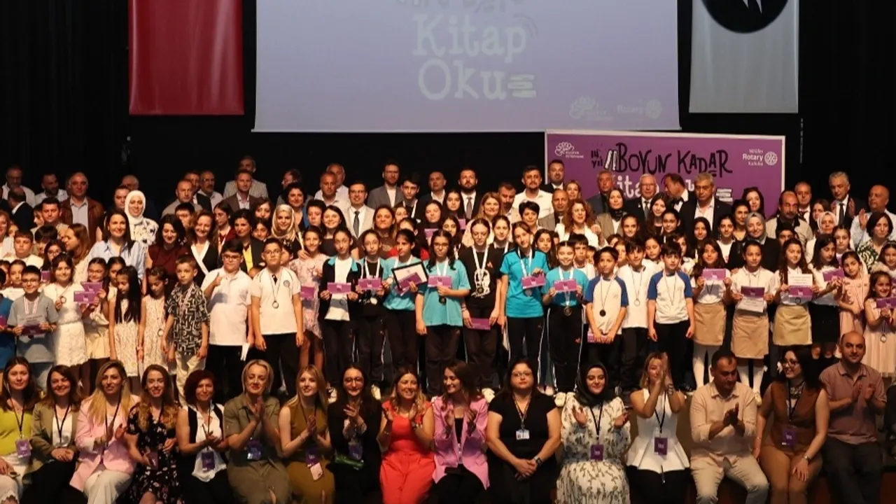 Bursa Nilüfer Belediyesi’nin Nilüfer İlçe Milli Eğitim Müdürlüğü ve Nilüfer Rotary Kulübü iş birliği ile düzenlediği “Boyun Kadar Kitap Oku” etkinliği ödül töreni ile sona erdi. Bursa Akademik Odalar Birliği’nde (BAOB) yapılan törene Nilüfer Belediye Başkan Yardımcıları Okan Şahin, Zerrin Güleş, Emre Karagöz ve Bukle Erman, Nilüfer İlçe Milli Müdür Vekili Selahattin Erdoğmuş ile şube müdürleri, Rotary Kulübü 2024-2025 Dönemi 2440. Bölge Guvernörü Mert Korur, Nilüfer Rotary Kulübü Dönem Başkanı Kerem Kahveci, okul idarecileri, öğretmenler, öğrenciler ve veliler katıldı.