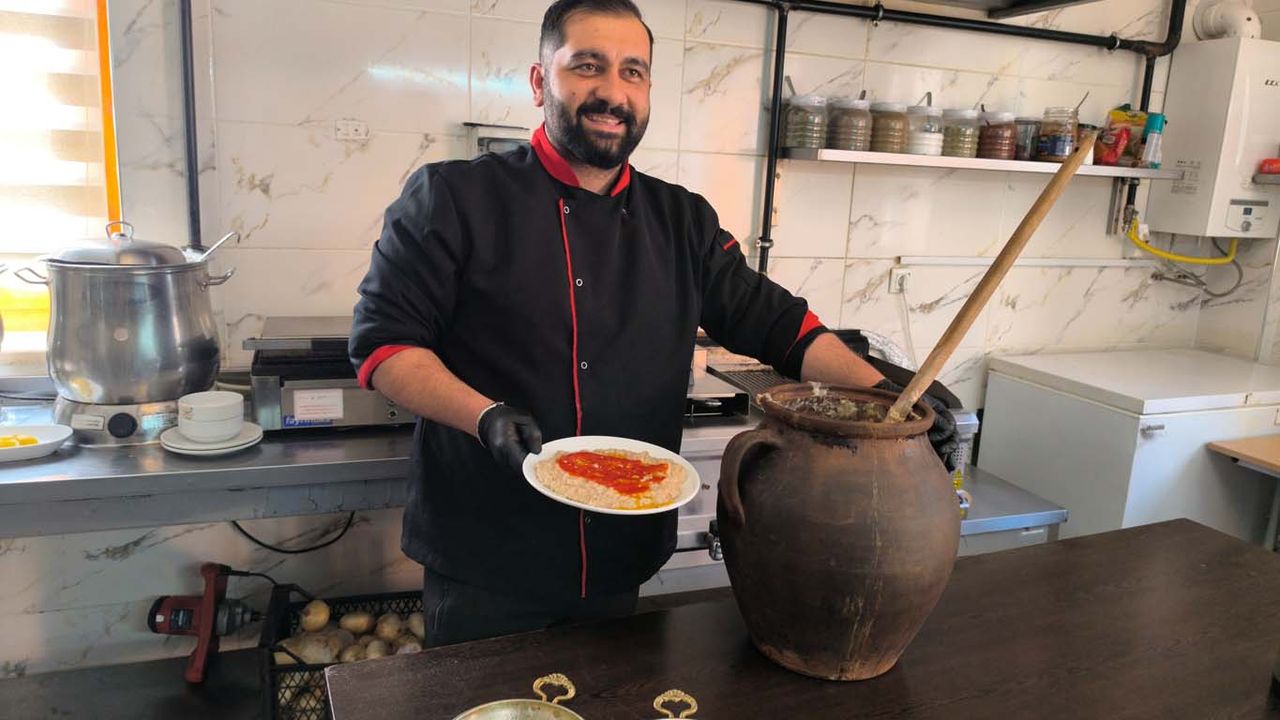Zeminine buğdayı kattıktan sonra üzerine hayvanın zıpkın (pöç) kısmını ilave ediyoruz. Onun üstüne löp et ve sonrasında ise keşkeğin olmazsa olmazı etli lola kemiğini katıyor ve üstüne de nohudu ilave ettikten sonra pişirmek için fırına veriyoruz" dedi.