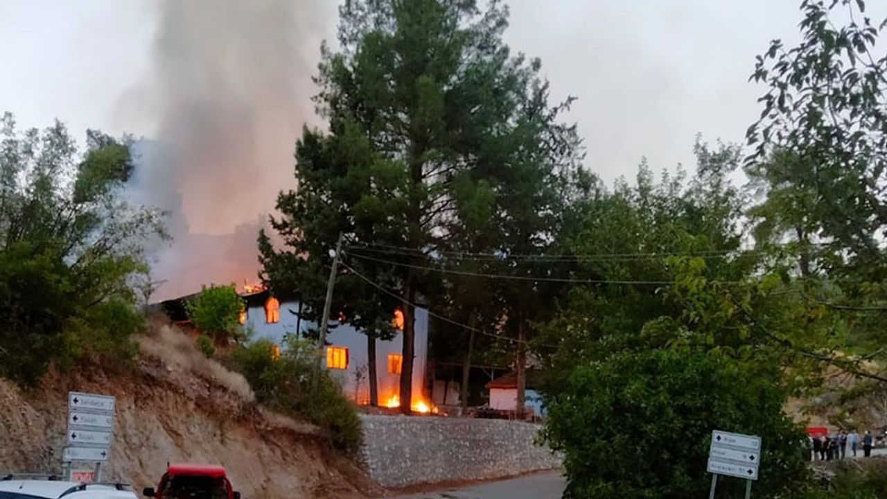 Kısa sürede caminin içerisini kaplayan alevler, çatıyı da tutuşturdu.