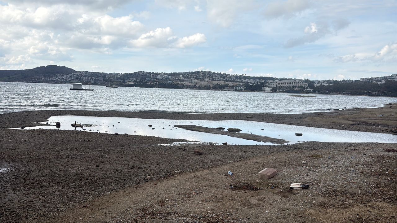 Gümbet sahilinde ise kıyı hattı boyunca çekilen deniz tabanının ortaya çıkarttı. Sahilin bazı bölgelerinde küçük adacıklar olduğu görüldü.