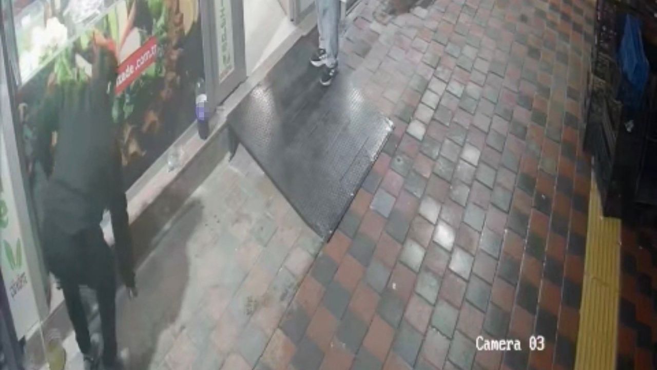 Bu sırada dışarıda bekleyen bir kişi, iş yerinin önünde bulunan sigara paketini alarak hızla uzaklaştı. O anlar iş yerinin güvenlik kamerasına yansıdı.