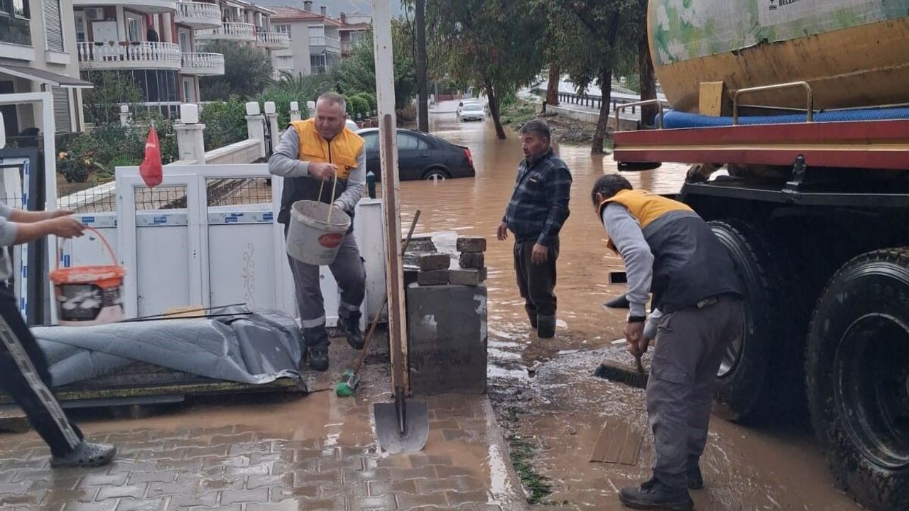 Belediyeye ait iş makineleri, kamyonlar ve personel, Yeni Foça’da hayatın normale dönmesi için aralıksız çalışıyor. İzmir'in Foça ilçesinde etkili olan sağanak yağış, hayatı olumsuz etkiledi. İlçede birçok ev, iş yeri ve araç sel sularına teslim oldu. Foça Belediye Başkanı Saniye Bora Fıçı, "Foça'nın şu anda yardıma ihtiyacı var" diyerek destek çağrısında bulundu. Yağışın ardından bölgeye çok sayıda ekip sevk edildi. Başkan Fıçı, yaşanan durumun olağanüstü olduğunu belirterek, "Ciddi bir sel baskınıyla karşı karşıyayız. Herkesi destek olmaya davet ediyoruz" dedi.