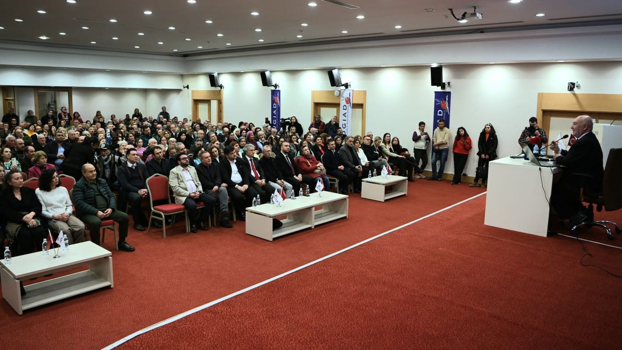 Kuşadası Genç İş İnsanları Derneği tarafından (KUGİAD) Kuşadası Belediyesi ve Kuşadası Ticaret Odası’nın (KUTO) katkılarıyla düzenlenen konferansa ilgi yoğun oldu. KUTO Konferans Salonu’nda gerçekleştirilen etkinliğe Kuşadası Kaymakamı İbrahim Keklik, Kuşadası Belediye Başkan Vekili Efe Berberoğlu, CHP Kuşadası İlçe Örgütü Başkanı Mehmet Gürbilek, KUGİAD Başkanı Haşmet Boğalı, siyasi partilerin temsilcileri ve çok sayıda sivil toplum kuruluşu katıldı.