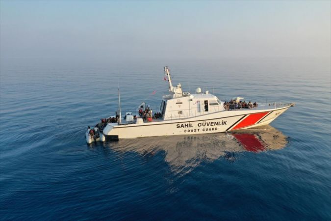 Muğla'nın Bodrum ilçesinde, yasa dışı yollarla yurt dışına çıkmaya çalışan 115 düzensiz göçmenin yakalanma anı drone ile görüntülendi.