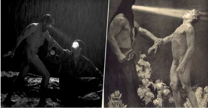 Robert Eggers'in 'Deniz Feneri' (2019) adlı filmi ve Sascha Schneider'in 'Hypnosis' (1904) eseri