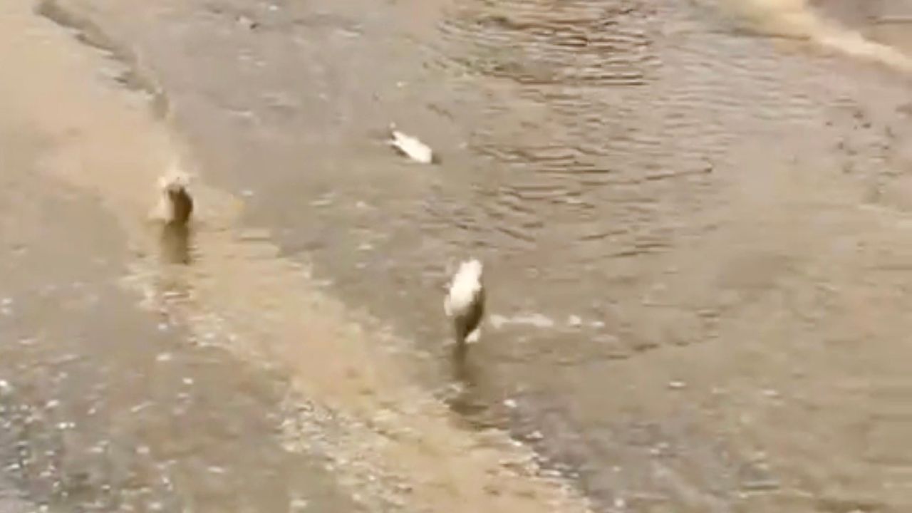 O anlar, bölge sakinlerinden tarafından cep telefonu kamerasıyla saniye saniye kaydedildi. Görüntülerde, su taşkınıyla birlikte yola savrulan balıklar ve vatandaşların kurtarma operasyonu net bir şekilde görüldü. Yağışın dinmesi ve suların çekilmesiyle bölgede hayat normale dönerken, yaşanan bu ilginç olay objektiflere bu şekilde yansıdı.