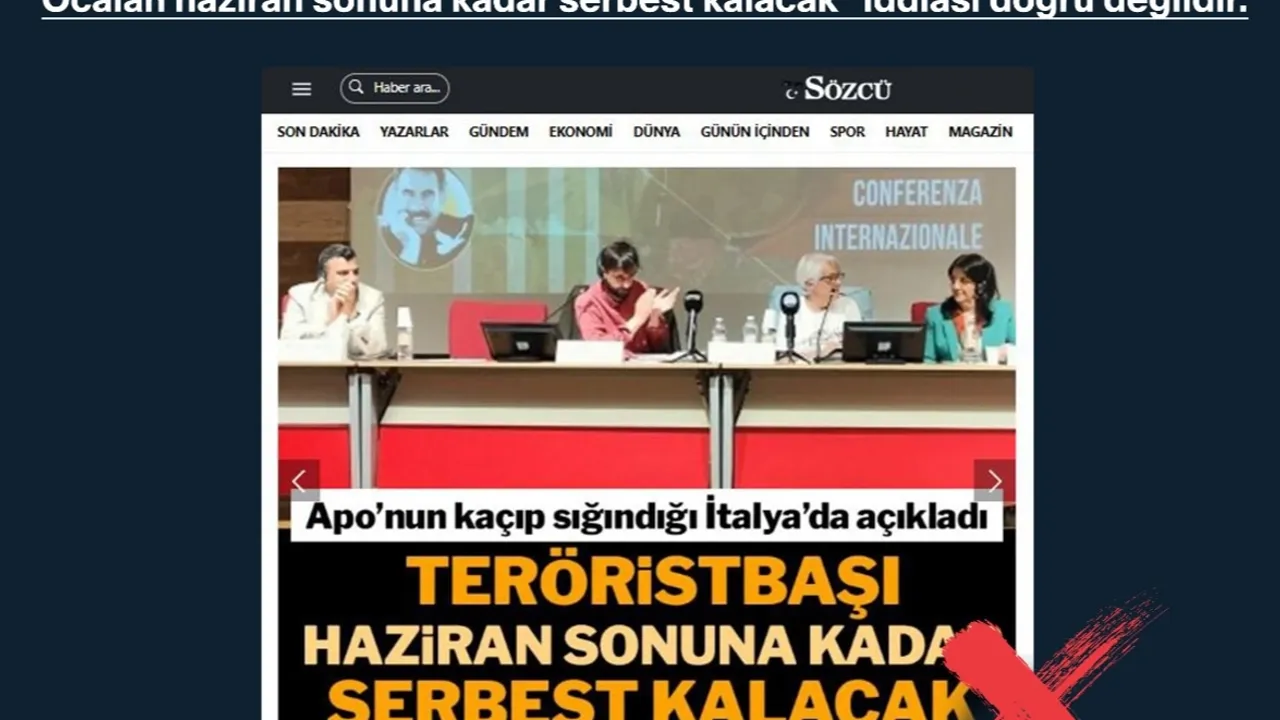Dezenformasyonla Mücadele Merkezi'nden yapılan açıklamada, "DEM Parti Van Milletvekili Pervin Buldan, katıldığı bir programda, örgütün silah bırakması ve kendini feshetmesine yönelik sürecin, haziran sonuna kadar başarıya ulaşmasının beklendiğini belirtmiştir. Buldan, bahse konu programda, "Öcalan, haziran ayında serbest kalacak" şeklinde bir ifade kullanmamıştır. Terör örgütü PKK'nın kendini feshetmesi ve tüm grupların silahları bırakması çağrısı ile ilgili Türkiye Cumhuriyeti Devleti’nin herhangi bir pazarlık yapması söz konusu değildir. Kamuoyunu manipüle etmeye yönelik asılsız iddialara itibar etmeyiniz" ifadeleri yer aldı.