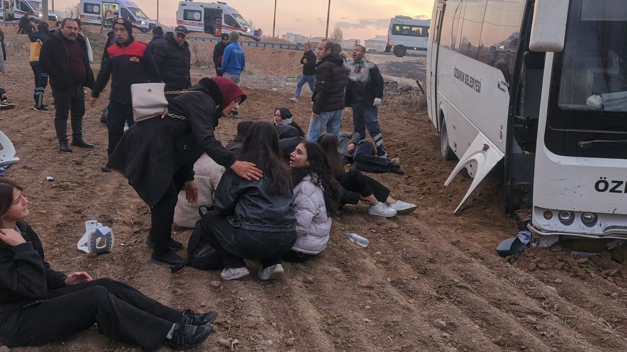 Çarpışmanın etkisiyle midibüs yol kenarındaki şarampole savruldu. Kazada ilk belirlemelere göre çoğunluğu öğrenci 17 kişi yaralandı. Kurtarma ekiplerinin bölgedeki çalışmaları devam ediyor.