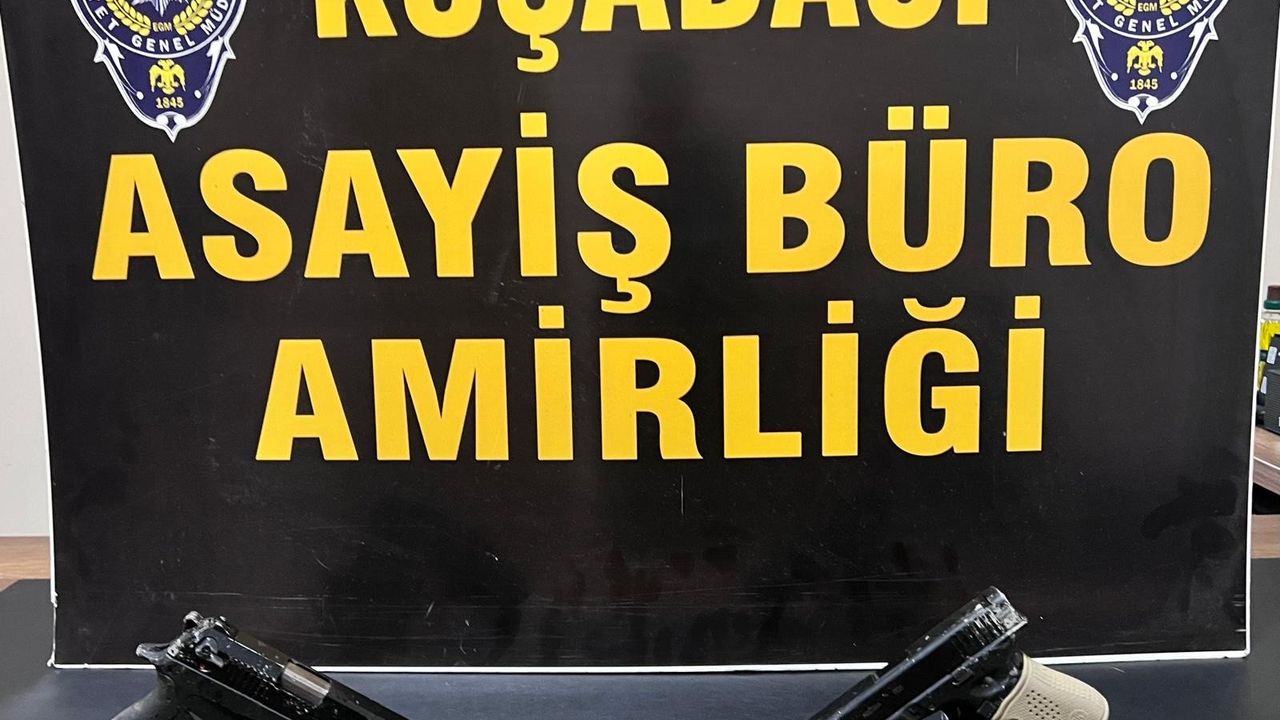 Kuşadası İlçe Emniyet Müdürlüğü Asayiş Büro Amirliği personelimizce, aranan şahısların yakalanmasına yönelik olarak yürütülen çalışmalarda, Yol Kesmek Suretiyle Birden Fazla Kişi ile Yağma ve Ruhsatsız Ateşli Silahlarla Mermileri Satın Alma veya Taşıma veya Bulundurma suçlarından 17 yıl Kesinleşmiş Hapis Cezasıyla aranması bulunan R.Ç. ile Uyuşturucu veya Uyarıcı Madde Ticareti Yapma veya Sağlama ve Hükümlü veya Tutuklunun Kaçması suçlarından 17 yıl 10 ay Kesinleşmiş Hapis Cezasıyla aranması bulunan S.K. isimli şahıslar yakalanırken, yapılan aramalarda 2 adet tabanca, 23 adet fişek ele geçirildi. Şahıslar gerekli işlemlerin ardından cezaevine teslim edildi.