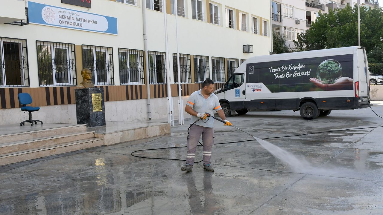 Kuşadası Belediyesi, 8 Eylül’de başlayacak olan 2025-2026 eğitim dönemi öncesinde öğrencilerin ve öğretmenlerin sağlıklı ve güvenli bir ortamda ders başı yapabilmeleri amacıyla kent genelindeki okullarda hafta başında temizlik çalışması başlattı.