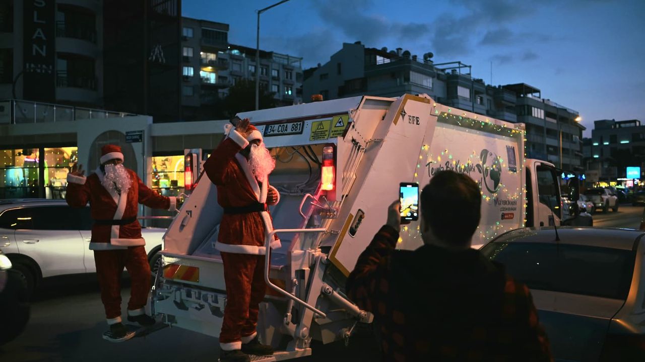 Işıklarla süslenen kamyonlardan inen Noel Baba kostümlü belediye personeli, çocuklara ve yetişkinlere şeker ikram etti. Etkinlik kapsamında çevrenin temiz tutulması için yapılması gerekenler anlatılırken, doğanın korunmasının önemi vurgulandı. Hem kent sakinlerinin hem de Kuşadası’nı ziyaret eden yerli ve yabancı turistlerin yoğun ilgisiyle karşılanan etkinlik, yeni yıl atmosferine çevreci bir anlam kattı.