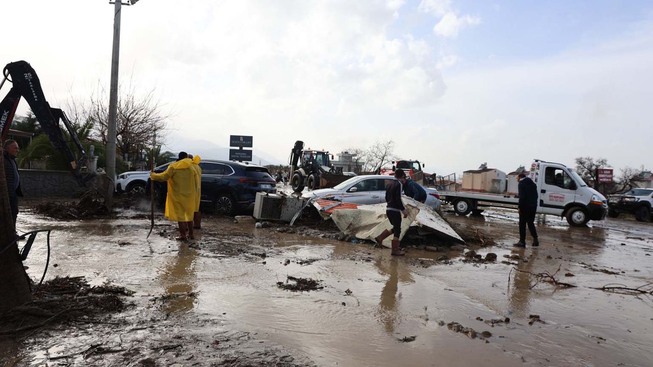 Yağışın ardından Kuşadası Belediyesi'ne bağlı ekipler seferber olurken kapanan yolların açılması, sürüklenen araçların kurtarılması için çalışma başlatıldı. Aydın Büyükşehir Belediyesi ASKİ ekiplerinin de çalışma yaptığı bölgede özel iş makinelerinin de çalışmalara destek verdiği görüldü.