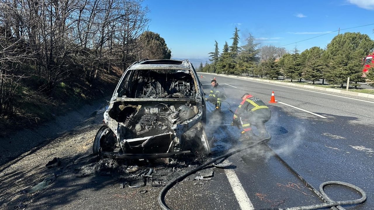 Olay, İzmir-Uşak karayolu Çınarcık köyü yakınlarında meydana geldi. Edinilen bilgilere göre, M.E.G. (54) idaresindeki 34 CPD 996 plakalı cip seyir halindeyken arızalandı. Sürücü aracı emniyet şeridine çektikten kısa süre sonra aracın ön tarafından alevler yükselmeye başladı.