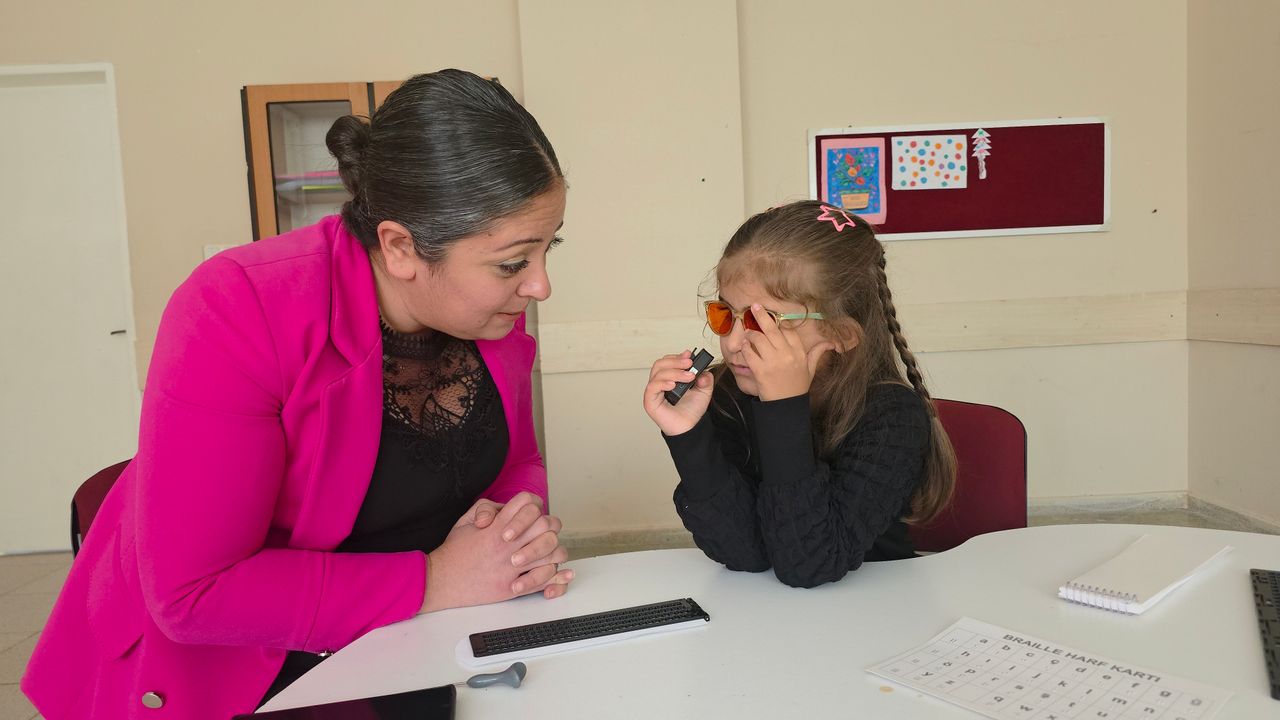 Küçük yaşına rağmen öğrenme isteğiyle dikkat çeken Defne, Braille alfabesini kısa sürede öğrenerek derslerinde büyük ilerleme kaydetti.