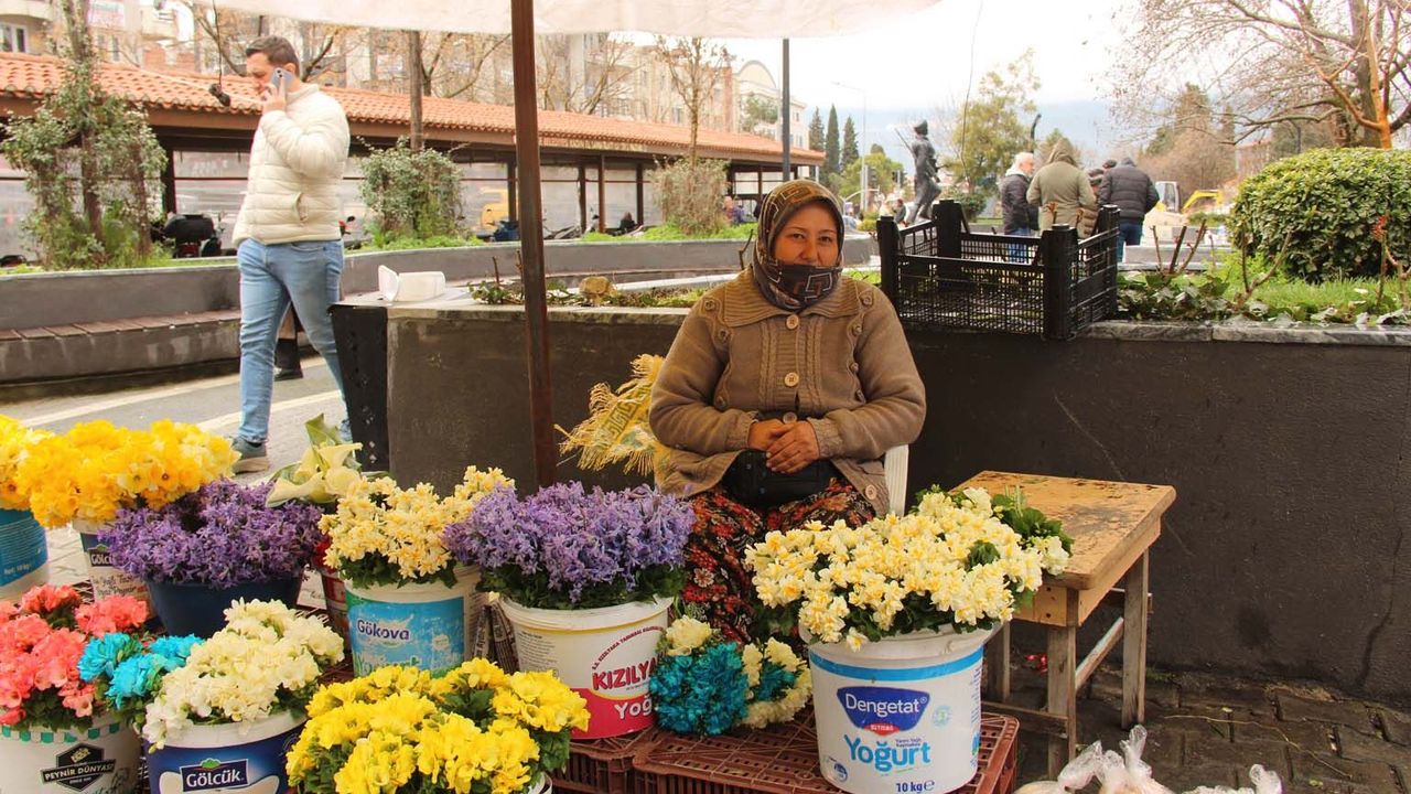 Pazar yerinin giriş kısmında kurulan çiçek tezgahları, hem renkli görüntüsü hem de çevreye yayılan hoş kokusuyla vatandaşların ilgisini çekiyor. Sabahın erken saatlerinde pazar alanına gelen esnaf, yoğurt ve peynir kovalarının içinde sergiledikleri nergis ve sümbülleri satışa sunuyor. Sarı, beyaz ve mor tonlarındaki çiçekler pazara gelen vatandaşların dikkatini çekerken, pazarın girişinde oluşan yoğun koku adeta baharın gelişini müjdeliyor.
