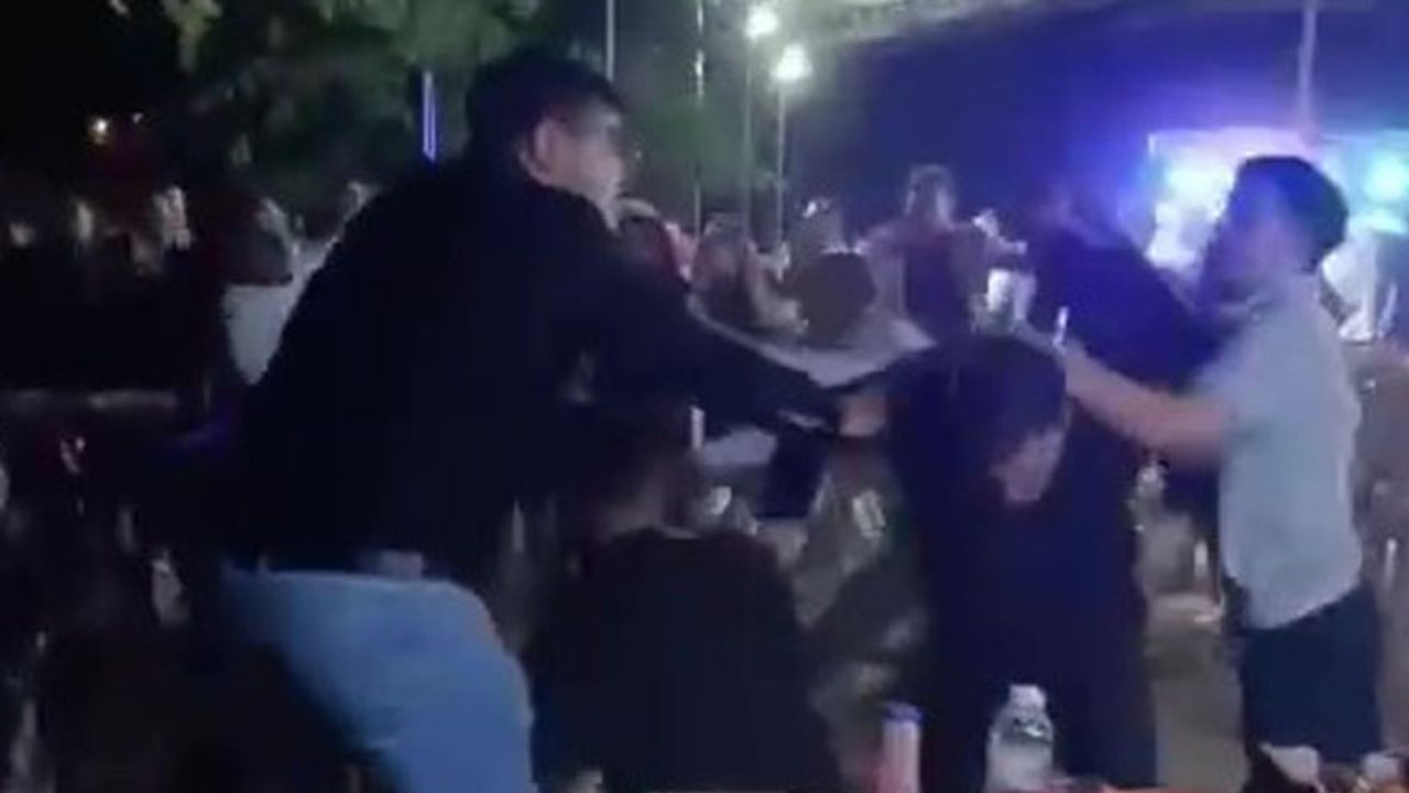 İki ailenin yakınlarının birbirine girdiği kavgada, bir anda sandalyeler havada uçuştu.