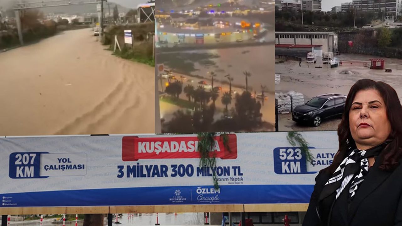 Yaşanan su baskınları, Aydın Büyükşehir Belediyesi’nin Kuşadası için daha önce duyurduğu altyapı ve yol yatırımlarını da yeniden gündeme taşıdı. Kentin farklı noktalarına asılan “207 km yol çalışması” ve “523 km altyapı çalışması” ifadelerinin yer aldığı afişler, yağmur sonrası oluşan manzaralarla birlikte vatandaşların tepkisine neden oldu.