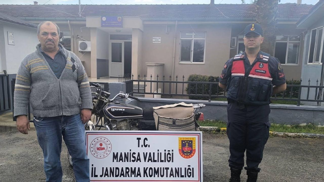 Manisa İl Jandarma Komutanlığı'na bağlı Salihli İlçe Jandarma Komutanlığı Trafik Timi, Adala Mahallesi'nde gerçekleştirdiği trafik denetimi sırasında yol kenarında park halinde bulunan plakasız bir motosiklet fark etti.