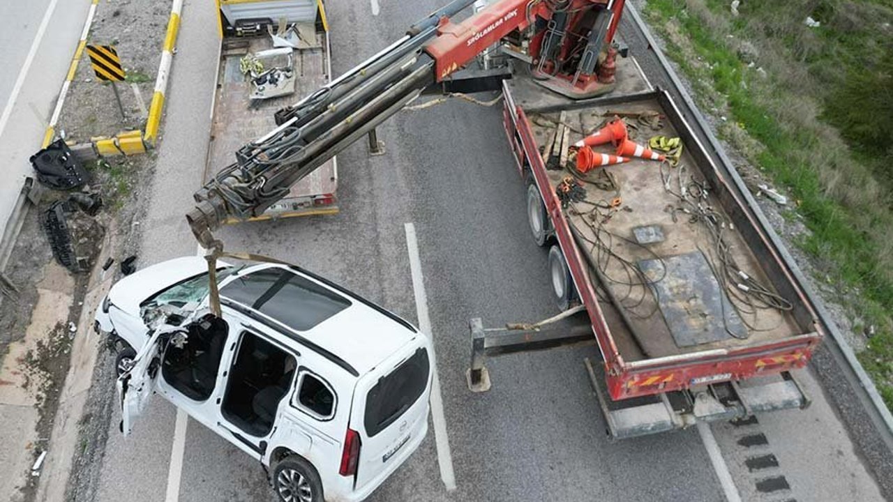 Kazada yan yatan araç ekiplerin uzun uğraşları sonrası girdiği refüjden vinç yardımıyla kaldırılarak otoparka götürülürken, olayla ilgili jandarma tarafından inceleme başlatıldı.