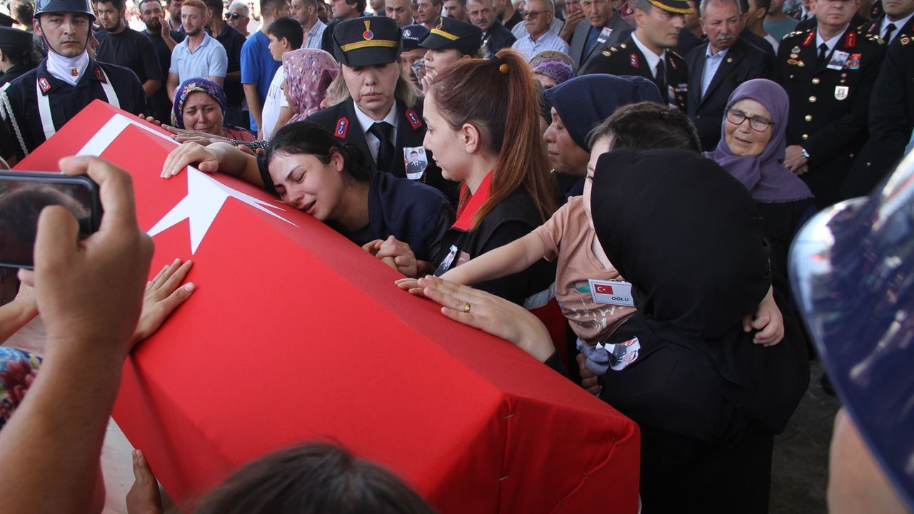 Dualar eşliğinde omuzlara alınan şehidin naaşı, "Şehitler ölmez, vatan bölünmez" sloganları arasında aile kabristanına defnedildi.