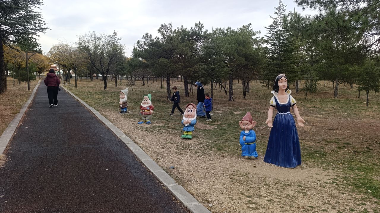 Geçtiğimiz aylarda parkta çocuklar için oluşturulan oyun alanına neredeyse her çocuğun okuduğu Pamuk Prenses ve 7 Cüceler Masalındaki oyuncak figürler yerleştirildi.