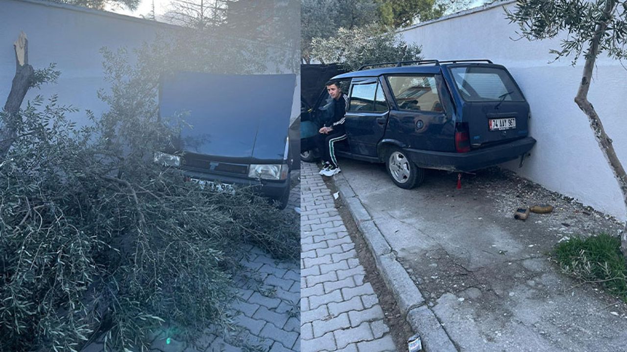 Hızını alamayan araç, Şehir Stadı’nın hemen yanındaki kaldırıma çıkarak önce burada bulunan bir zeytin ağacına ardından duvara çarparak durabildi. Olay sırasında kaldırımda yaya bulunmaması muhtemel bir facianın önüne geçti.