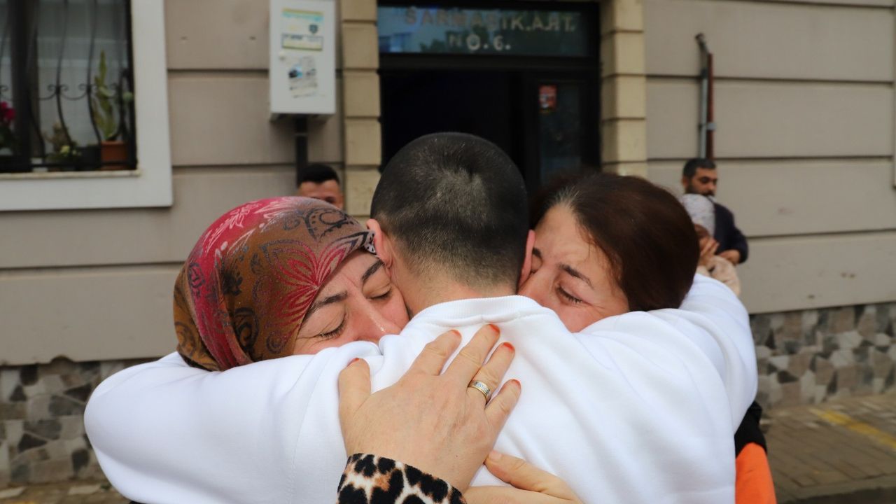 Evlerinin önünde annesi Sultan Arslan, kardeşleri ve akrabaları tarafından karşılanan Engin Arslan, burada ailesi ile sarılarak hasret giderdi.